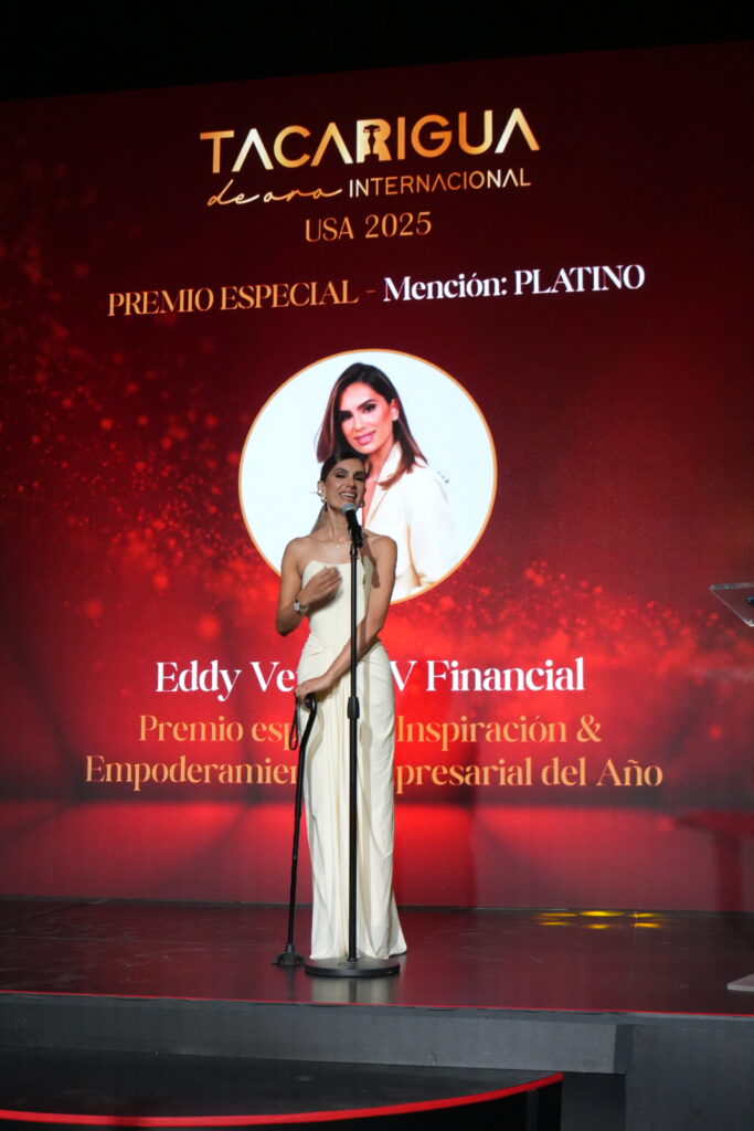 La reconocida conferencista internacional Eddy Vera fue galardonada este domingo 12 de octubre con el “Premio Especial Inspiración & Empoderamiento Empresarial”, durante la prestigiosa gala de los Premios Tacarigua de Oro USA 2025, celebrada en los estudios de ARPI Group en Miami Lakes.